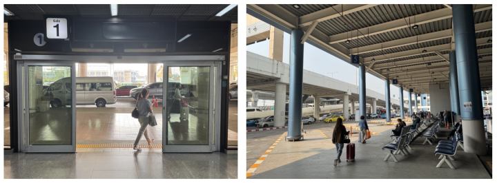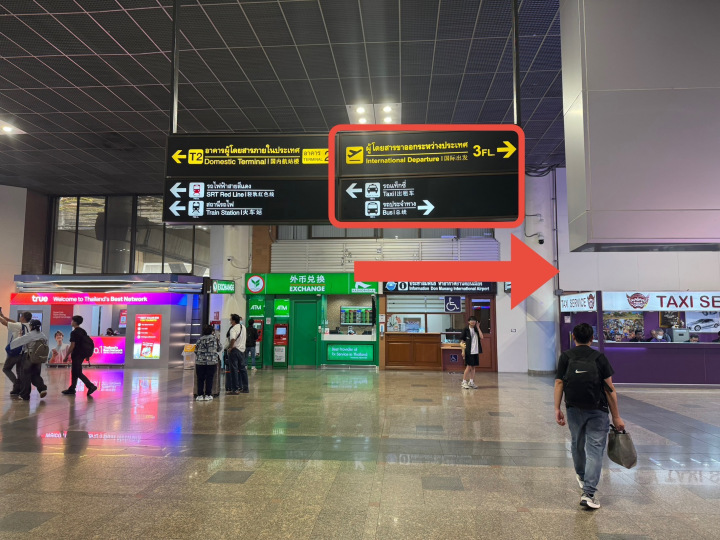 ドンムアン空港からお越しの方は、出口を出て右へ進みます(下記画像)
