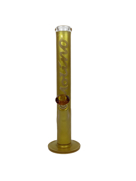 詳細:モリノ グラスのゴールドフィンガー ガラス ボングは、7mm 厚の厚壁パイレックス ガラスに魅力的な金のコーティングを施した、まさに驚異的な製品です。高さ 15.75 インチのストレート チューブ ボングのネック部分には、透明なモリノ グラスのロゴがネガティブに彫刻されており、内部で煙がたまる様子を見ることができます。
